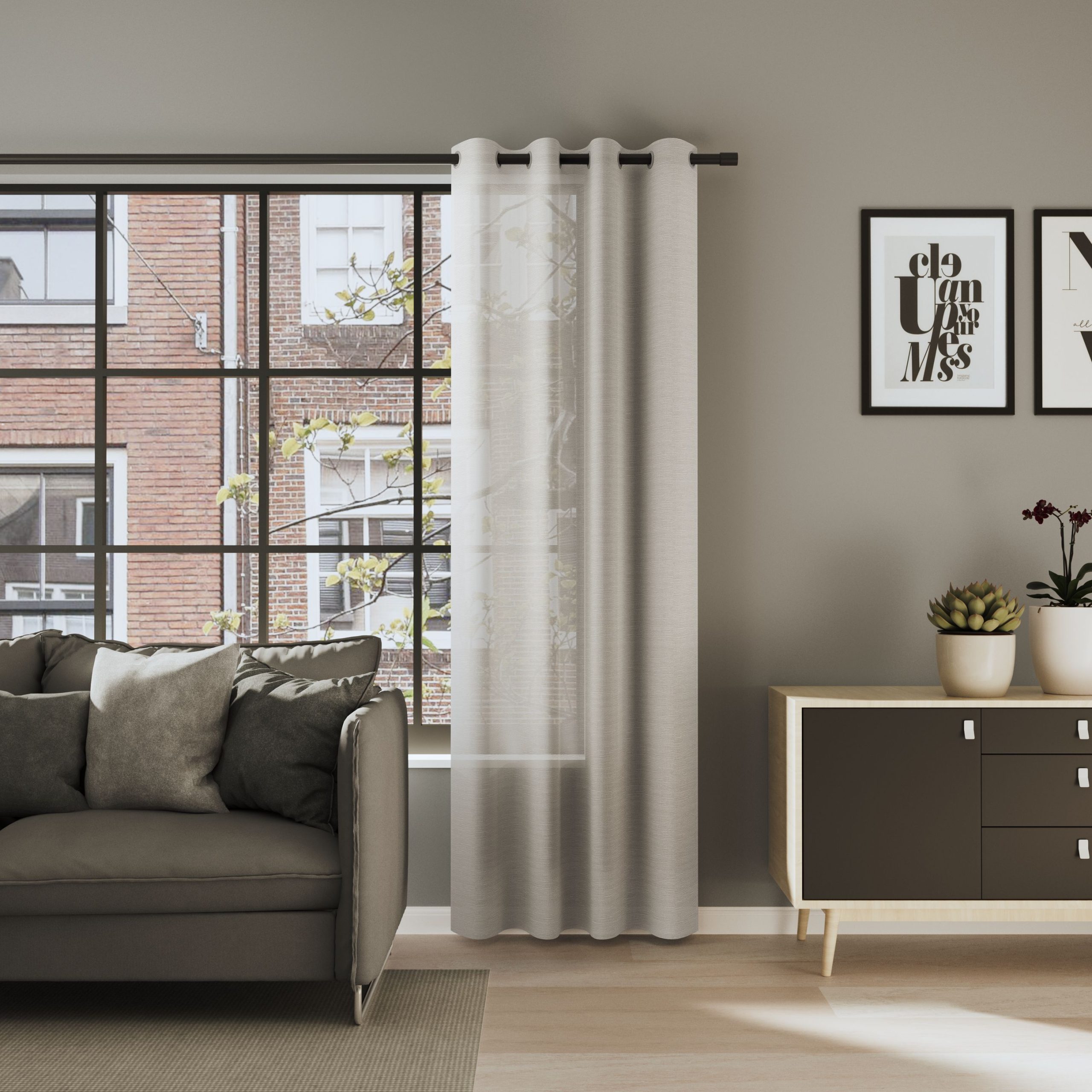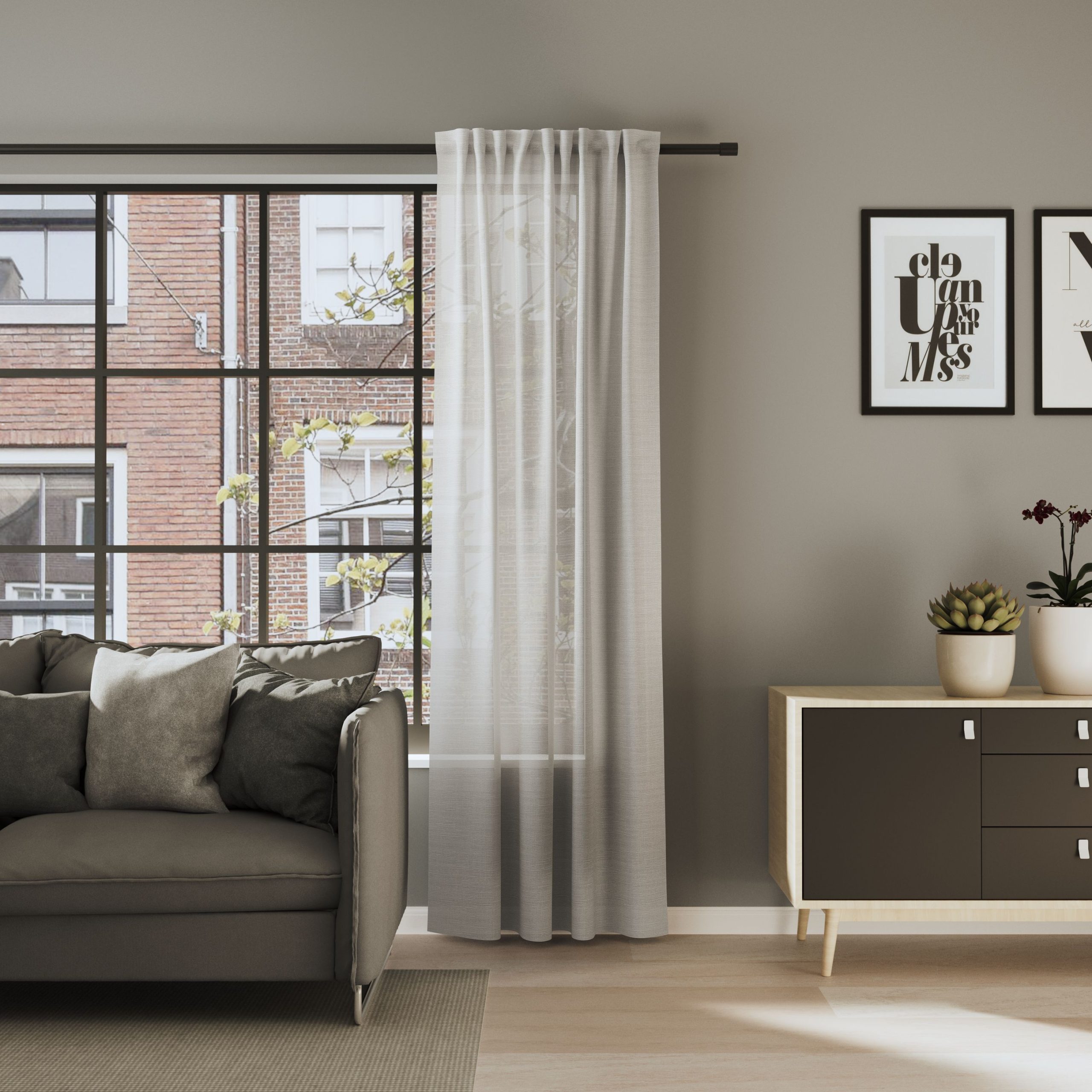 SONORA überzeugt mit einer besonderen Struktur: Das querverlaufende Design kombiniert eine organische Musterung mit einer 3D-Optik und einer textilen Leinenstruktur. Der halbtransparente Stoff verleiht Räumen Leichtigkeit und schafft ein weiches Lichtambiente. Der Vorhang in xakt deinem Wunschmaß.
