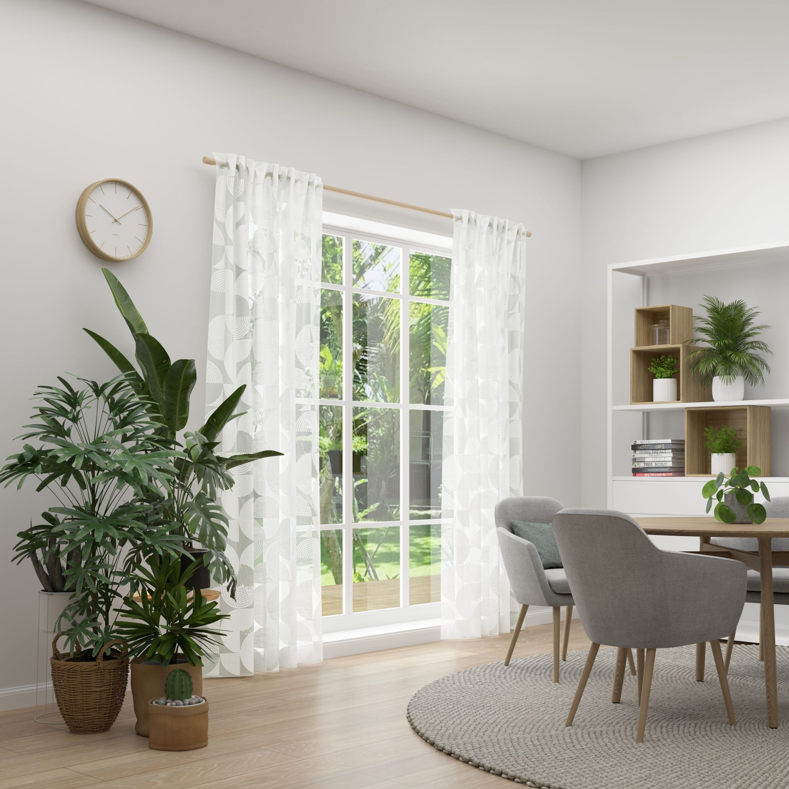 CIRCLE von Neutex for you! überzeugt mit ihrer modernen Kreisgrafik und dem dekorativen Ausbrenner-Look. Die halbtransparente Qualität lässt Tageslicht angenehm durchscheinen und verleiht dem Raum Tiefe und Leichtigkeit. Der Vorhang in xakt deinem Wunschmaß.