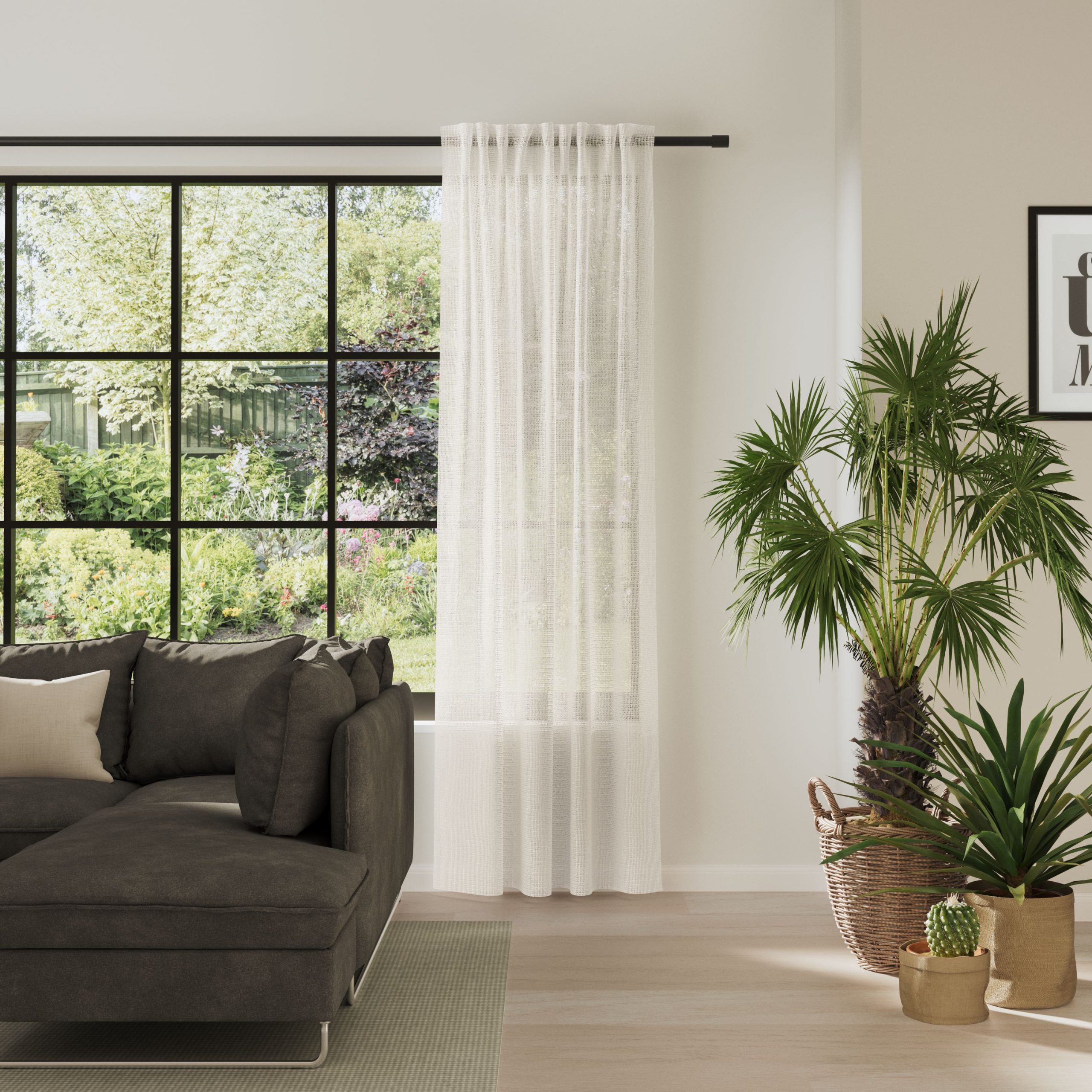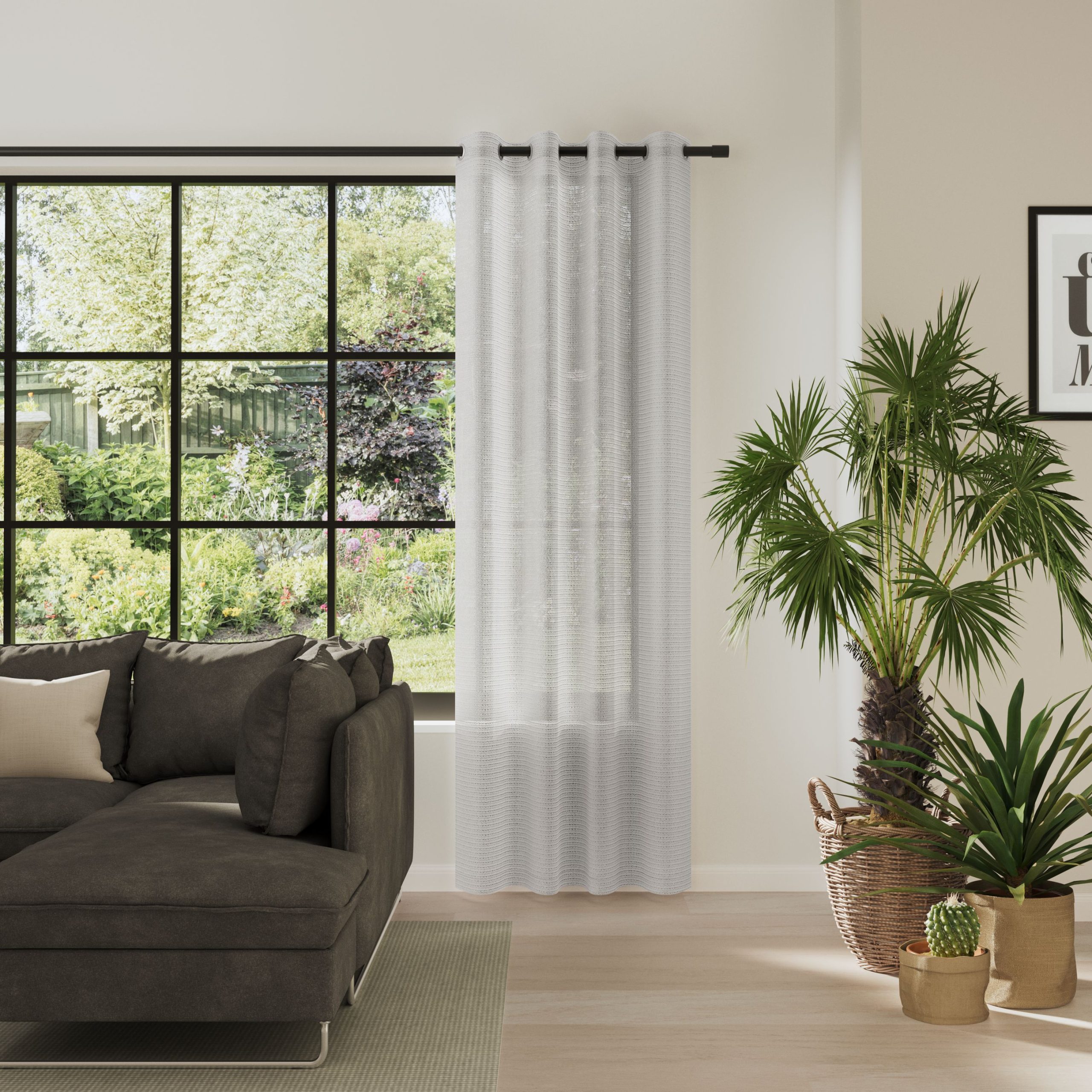 SONORA überzeugt mit einer besonderen Struktur: Das querverlaufende Design kombiniert eine organische Musterung mit einer 3D-Optik und einer textilen Leinenstruktur. Der halbtransparente Stoff verleiht Räumen Leichtigkeit und schafft ein weiches Lichtambiente. Der Vorhang in xakt deinem Wunschmaß.
