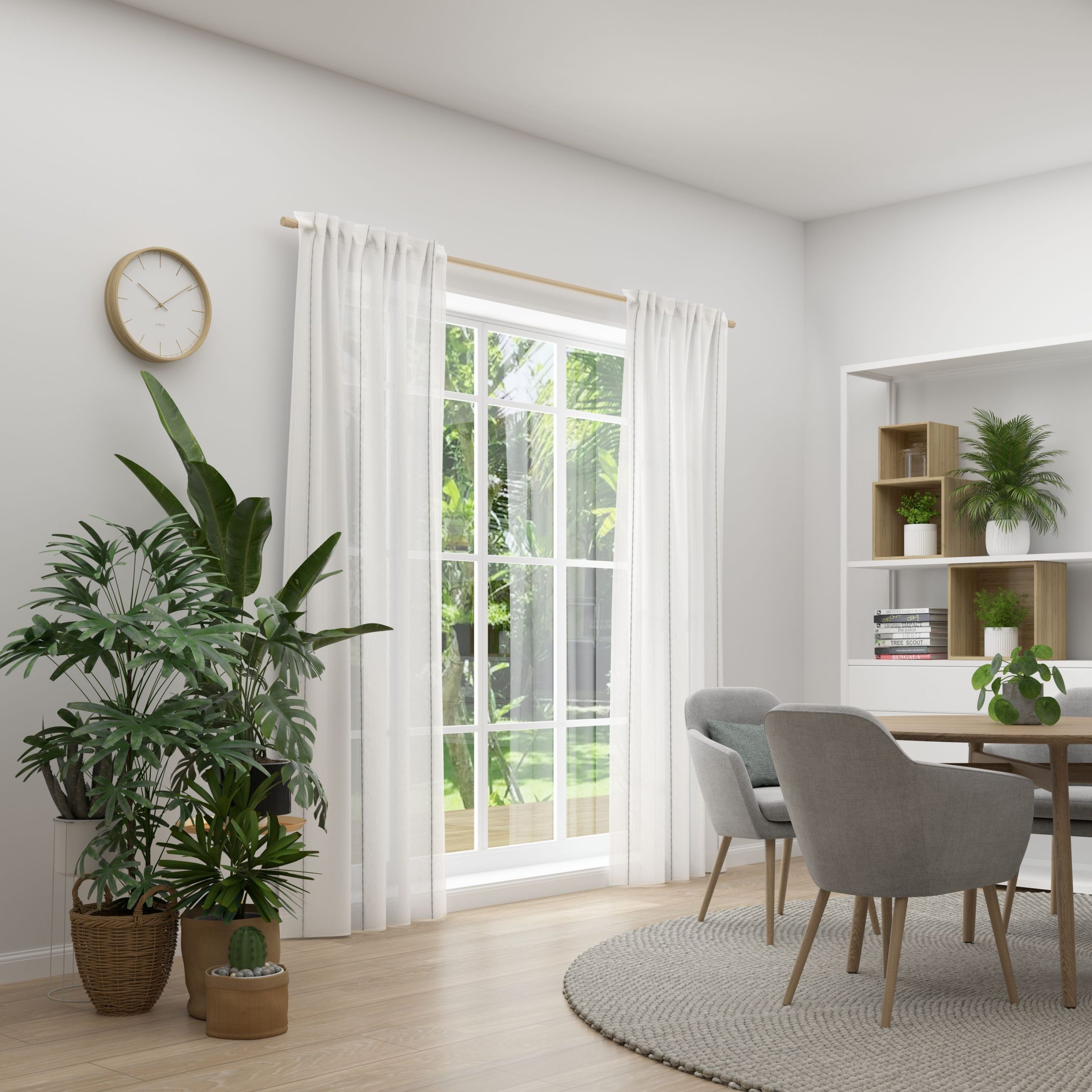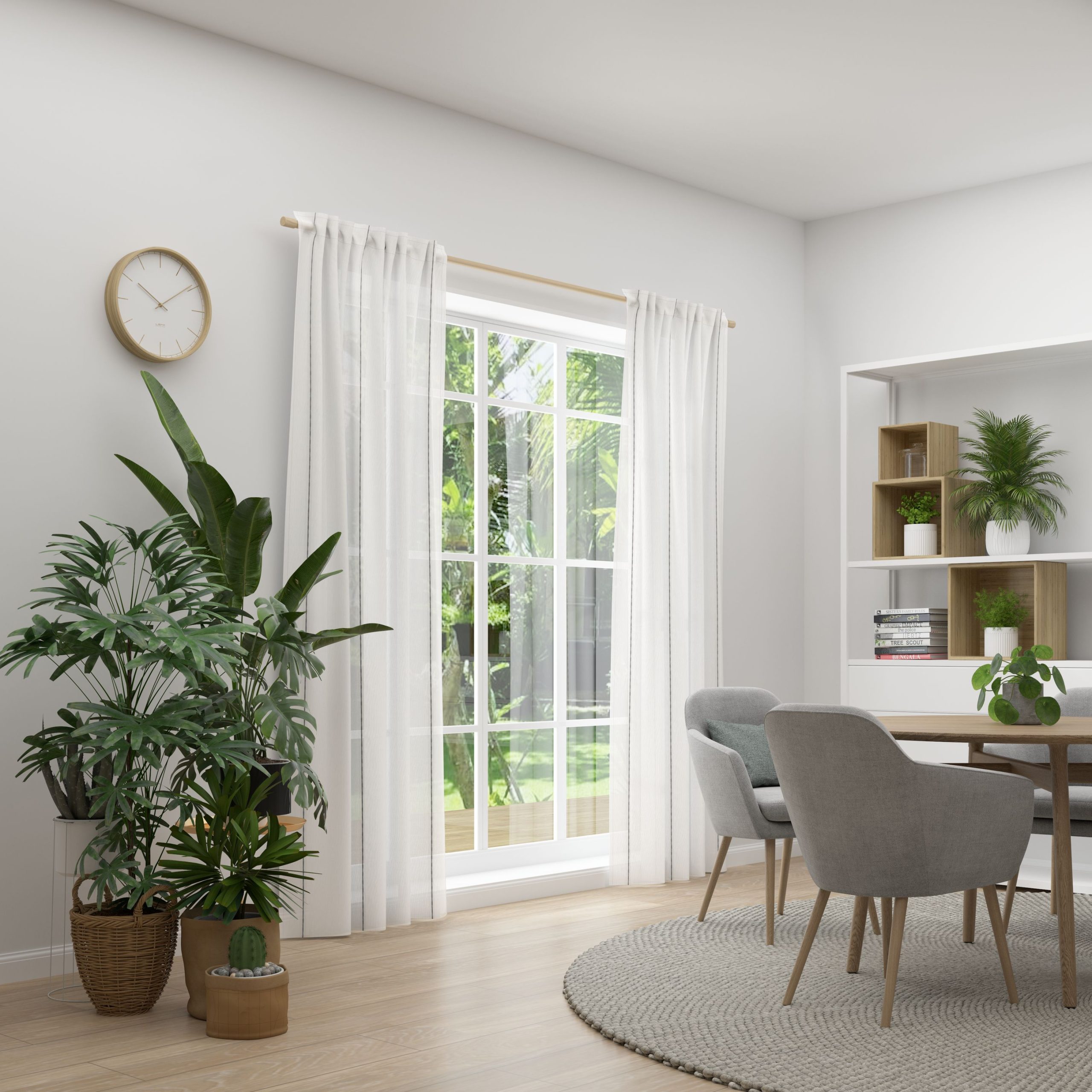 Die transparente Stoffqualität RASA eignet sich hervorragend für stilvolle Fensterlösungen, die Lichtdurchlässigkeit mit einem modernen Streifenmuster kombinieren. Die feine Struktur bringt eine angenehme Leichtigkeit in den Raum, während das dezente Design vielfältige Einrichtungsstile ergänzt. Der Vorhang in xakt deinem Wunschmaß.